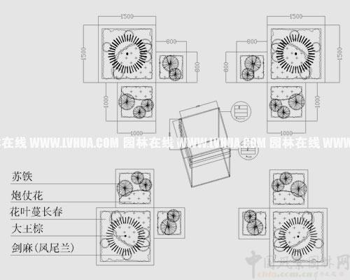 2.栽植形式:規格上采用大中小及高低各類尺寸的組合,從平面及豎向兩面來進行組合。