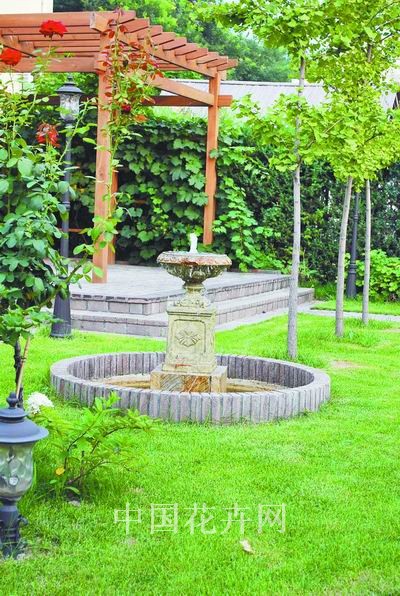 水景是夏季花園的福音,在帶來靈動之美的同時,又是消暑降溫的上乘“裝備”。既然是歐式風(fēng)格的花園,自然少不了體現(xiàn)歐風(fēng)的花崗巖疊水。花架前的綠地中,一座棕色的圓形水池很是搶眼。古老的歐式雕花噴泉將時空立刻拉回到十八世紀(jì)的英國莊園,沉穩(wěn)中盡顯高貴之氣。