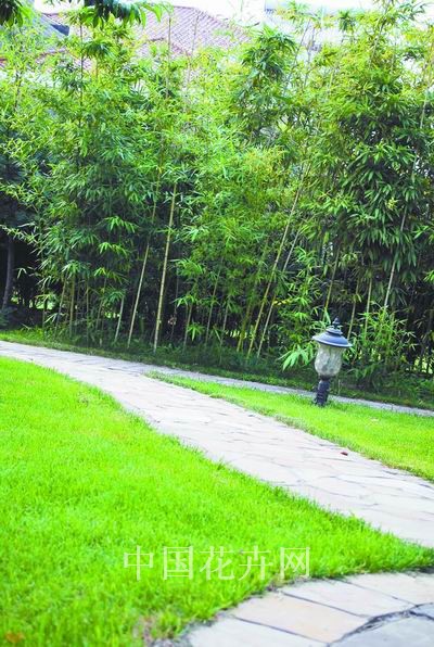 穿插在各個構筑物之間的草坪綠地是各色植物“活動”的天堂。筆直的銀杏帶來整齊的樹陣,到了秋天,滿樹金黃色的小扇子預示這一季又將是一個大豐收;冠幅很大的海棠、石榴除了送上嬌艷嫵媚的花朵,還有美味的果實供人分享;零星配置的櫻花、紫薇為一片片青翠增添動人的色彩;美人蕉、月季、芍藥、黃楊球、紅王子錦帶、玉簪、金娃娃萱草、大麗花、書帶草、劍蘭、繡球……又為整齊的草坪圍起高低錯落的五彩絲帶,讓步行其間的人在不經意間總有美麗的驚喜收獲。
