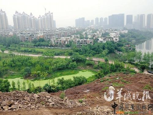 重慶北部新區奧林匹克花園小區旁的綠地滿目瘡痍