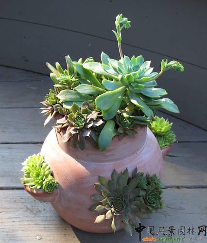這個陶罐中使用了多肉類植物與草莓的組合。難點在于,你能否在陶罐的底部做出一個完美的排水孔。