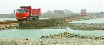 現在的錦州世園會會址儼然一個沸騰的大工地,每天都有大量運輸車往來穿梭在工地上。本報記者/朱忠鶴攝