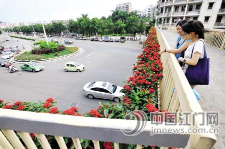 “啊,人行天橋的花真是靚喲!”昨天,當市民陳小蘭與同伴走過九中天橋時,情不自禁地發出感嘆。