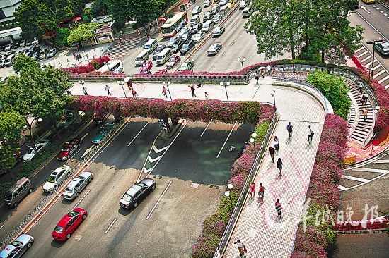 據了解,廣州市目前天橋立交橋“扮靚”長度達到200多公里。通過品種馴化、花期控制,目前廣州天橋簕杜鵑已經實現“三季有花、四季常綠”,蓬勃的花景可持續到初冬,到明年開春的3月份又會陸續開花。而且,在不久的將來,更多適合廣州氣候的花草新品種將引入天橋綠化。