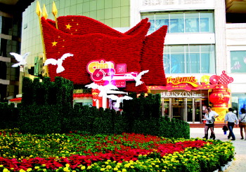連日來,省城濟南各大公園和主要街道有許多鮮花制作的街景造型亮相。這些造型設計新穎美觀,富有時代氣息,把金秋的泉城裝扮得分外美麗,營造出喜慶、和諧的節日氣氛。