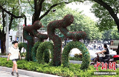 8月11日上午,福州市三角井街頭首次出現的“騎車人”立體植物造景,吸引了南來北往市民的目光。據福州市綠化工程處有關負責人介紹,工人們先用鋼筋搭好架子,把泥土包在里面,外面用既可透氣又可透水的一種特殊綠色海綿將其包起來。再將海綿上的一些小洞內種上叫“景天”的植物種子。幾天后,就有了這尊“騎車人”郁郁蔥蔥的立體植物造景。