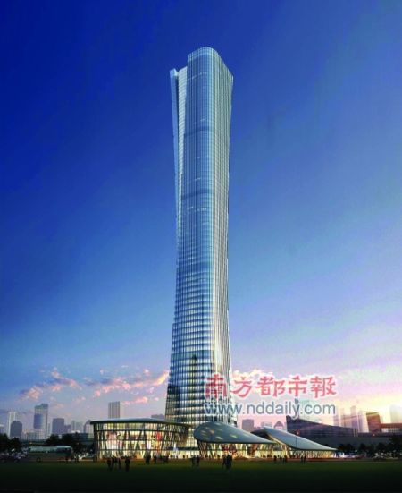 該方案將為南站東北側的兩地塊整體考慮,分別為350米和300米的超高層雙子塔,兩幢塔樓朝向南站入口方向形成歡迎之手勢,共同構成了南站核心商務區的門戶形象。其中,主樓的建筑形態借鑒南方地區的春筍形象,螺旋狀線條上升的同時標準層平面縮進,獲得了優美建筑形態,并降低了超高層的風荷載,有利于超高層建筑的結構穩定性。