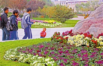 天氣漸冷,耐寒花卉逐漸成為主角,扮靚天津市街頭、公園。 記者張 立攝