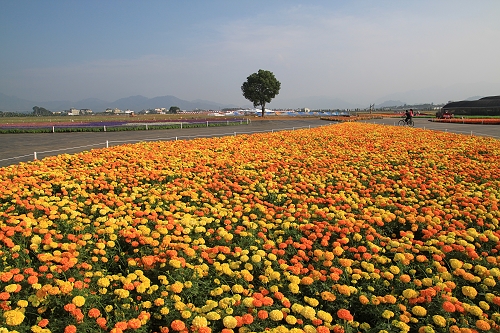 花海區(qū)以繽紛亮麗的景觀和無垠壯麗的花海為特色,面積廣達(dá)28公頃。精致花草區(qū)栽種64種花,以羽狀雞冠花、大花四季海棠、一串紅及萬壽菊等鮮麗色彩的花朵,裝置線條柔順多變的花圃。周邊粗放花草區(qū),亮麗黃彩的太陽麻腹地最大,共12公頃,向外延伸到邊際。波斯菊除了常見的純色花種之外,今年新增紋瓣波斯,色彩艷麗,搖曳生姿。向日葵、小油菊成片花海,塑造碩大便是美及繽紛亮麗的景觀。