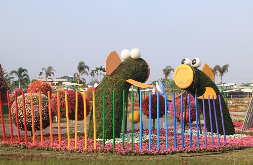 臺中國際花毯節(jié)以彈涂魚的大型花藝設(shè)施,展現(xiàn)臺中濕地生態(tài)之美。