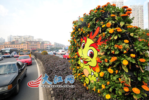 “龍年主題”花卉提前亮相南昌街頭(圖)