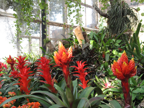 在這些紅紅火火的植物中,最具亮點(diǎn)的當(dāng)然還要屬熱帶蘭花和鳳梨了,它們的布展主要是模擬其在原生地?zé)釒в炅汁h(huán)境中的生存方式,在樹上或巖石的縫隙處種植,并讓它們的根須與所處的環(huán)境相攀附,為植物提供更好的棲息地。