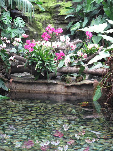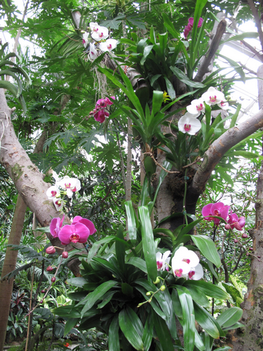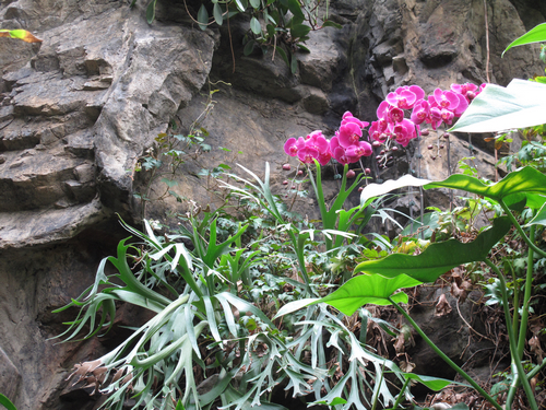 蝴蝶蘭在熱帶蘭花中有“蘭中皇后”的美譽,它的氣生根能吸收空氣中的養分而生存,歸入氣生蘭范疇,可說是熱帶蘭花中的一個大族。它的植株非常奇特,既無匍匐莖,也無假球莖。每棵只長出數張像湯匙般肥厚的闊葉,交互疊列在基部之上。白色粗大的氣根則露在葉片周圍,有的牢牢抓住樹枝,有的緊緊攀附在巖石上,在展覽溫室內隨處可見,極富天然野趣。蝴蝶蘭中紅色系的就更多了,紫紅、玫紅、桃紅、橙紅,幾乎每朵蘭花上都能找到紅色的影子。