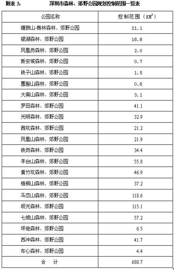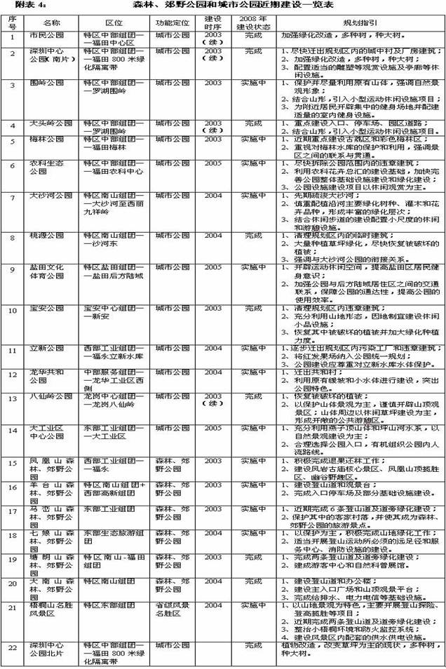 2.重點建設離城市較近的森林、郊野公園及15個城市公園建設(詳見附表4),加快梧桐山風景名勝區建設。