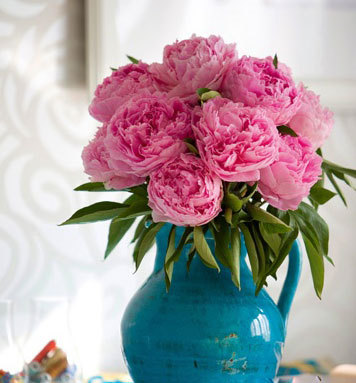 氛圍:粉色芍藥花搭配孔雀藍(lán)的瓷質(zhì)花瓶,散發(fā)出嫵媚和清新氣質(zhì),非常適合擺放在以淺色調(diào)為主的環(huán)境中。