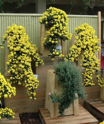 中國風景園林網訊 造型菊就是將菊花進行藝術加工,使構成一種特定的型式。傳統的造型菊技術就是先用鐵絲扎好要仿造物件的輪廓,再用菊花砌扎上去,具有很高的趣味性、技術性和科學性。造型菊主要有懸崖菊、盆景菊、大立菊等,深受人們的歡迎。