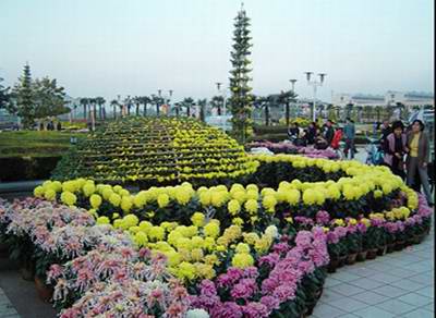塔菊造型裝點的廣場造景