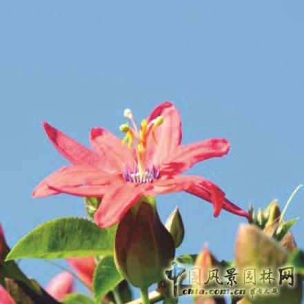獨(dú)特的大藍(lán)色、粉色花朵,果實(shí)是多汁水果。常綠藤本植物,喜光,不耐寒。