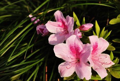 粉紅毛鵑,很常見的品種,在夕陽的映襯下,分外嬌艷、可愛