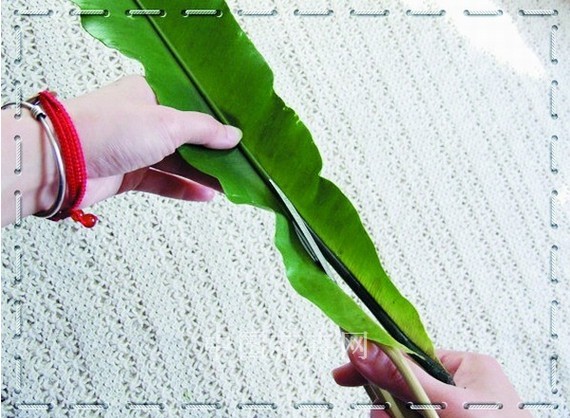步驟二:順著山蘇中間的葉脈將左右兩側(cè)的葉子剪下了