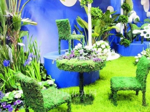 《綠籬之都》展位以不同的柱形體模擬現(xiàn)代都市建筑群,中間穿插擺放了很多花草,設(shè)計者要表現(xiàn)地是“匆匆忙忙的人生中,唯一不變的是刻畫在生命中的那抹鮮綠。人們被繁雜事務(wù)塞滿的心靈,只有借由花與草的陪伴,才能回歸永恒的鮮活。”