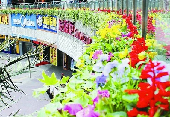 8000株常春藤、1.2萬株矮牽牛、6000株四季海棠……總長約4公里的彩色花帶,將武漢市光谷步行街裝扮得姹紫嫣紅。據悉,這是武漢市首條花街。年初,該市宣布今年將在全市興建11條能讓市民常感城市綠色的“花街”,人流密集的光谷步行街便是其中之一。
