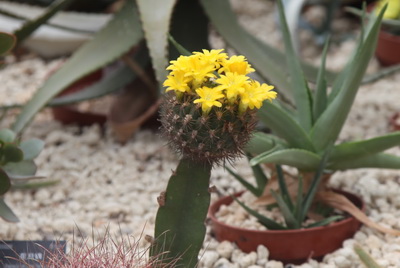 仙人掌科的巨人柱(Carnegiea gigantea)筆直高大的身軀,頂上密布綠色花苞,像是吹著小號(hào)的演奏者;全身絨刺的雪光(Parodia haselbergii)頭頂伸出了火紅花朵;孔雀開屏姿態(tài)的單刺團(tuán)扇(Opuntia monacantha)黃色花朵立滿枝頭;此外還有頂著冰淇淋狀碩大花蕾的般若(Astrophytum ornatum)等等。