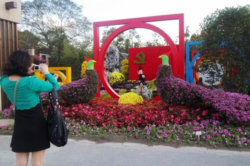 隨著秋意漸濃,菊花盛開得也愈發嬌艷。特別是造型小菊,從花展初期的初開,到目前的漸次盛開,讓菊花展區愈加絢爛多姿。懸崖菊長達一兩米,或從高處傾瀉而下,或隨廊架攀援而上,十分壯觀。孔雀、鯉魚、天鵝、花瓶等造型的小菊,隨著滿枝小花的盛開愈發光彩奪目。