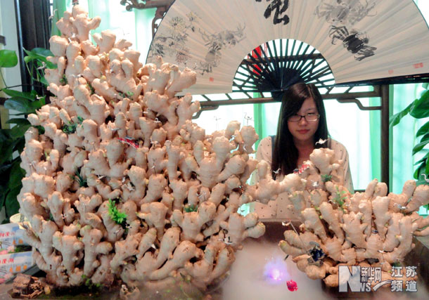 10日,蘇州山塘街一家飯店內獨特的景觀“姜山”吸引了許多顧客的目光,這座以數百塊鮮生姜壘砌而成的假山,取諧音“江山”,表達江山如畫之意。
