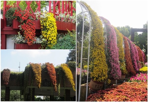 懸崖菊鑒賞的標準是花枝倒垂,主干在中線上,側枝分布均勻,前窄后寬,花朵豐滿均勻,花期一致,并以長取勝。有興趣的菊友可以趁菊展還未結束,到上海植物園觀看那花開繁密似錦帶的懸崖菊。