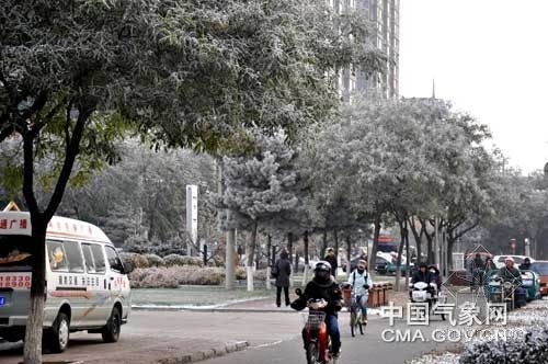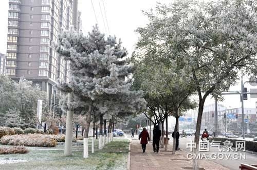內(nèi)蒙古普降小雪 出現(xiàn)霧凇景觀