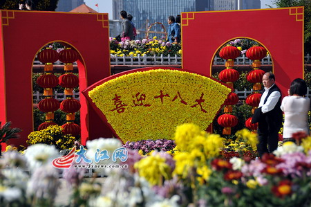 近日,南昌市第24屆菊花展在紅谷灘行政廣場開幕,當天天氣晴好,菊花展上游人如織。本屆菊展展覽單位展出菊花約100萬盆,展出面積約2.5萬平方米,菊展分為普通展、珍品展、造型展、文化展等展出。參展的種菊、案頭菊、盆景菊、造型菊、懸崖菊、大立菊、塔菊等菊花中,又按品種分為多頭菊和標本菊,包括玉色芙蓉、細雨寒沙、綠鸚鵡、霞光四射等10多個品種。