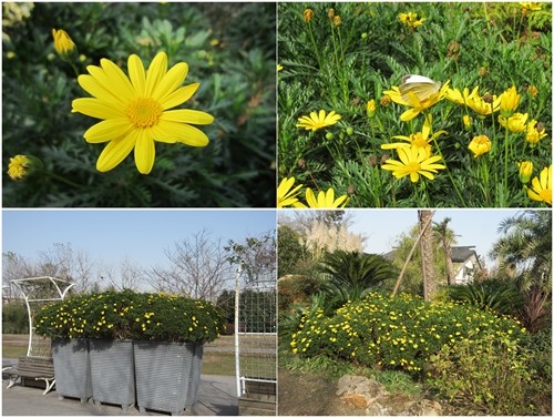 上海連續近2周的陰雨,天氣驟然變冷,濕冷的冬天就要到來。上海植物園內“百花”漸漸敗去,樹木也漸漸枯黃,滿眼都是飄落的枯葉,然而在園內的花境里,還盛放著一片片的菊花,它就是菊科金木菊屬的黃金菊。