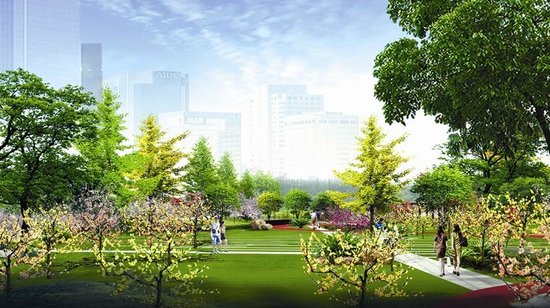 考慮到周圍已有建成的世界和平公園、大撤退紀念廣場,鋪裝面積較大,能夠做到集散人流、居民健身活動等。“臘梅園”將以生態為主,盡量少設或不設大面積的鋪裝節點,重點營造植物景觀。旨在將該區域打造成園路自然流暢、植物景觀錯落有致、植物品種豐富多變的城中綠島。