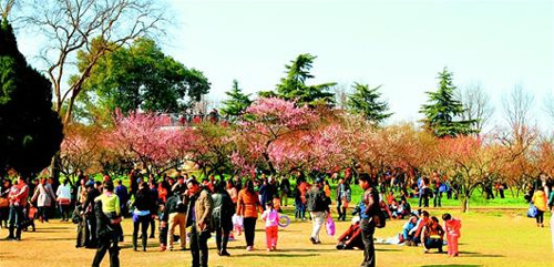 東湖(武漢)連續一周陰雨天氣后,梅園終于迎來陽光周末。據磨山風景區管理處介紹,目前梅園內早、中期梅花全部盛開,開放率達70%,進入最佳觀賞期。