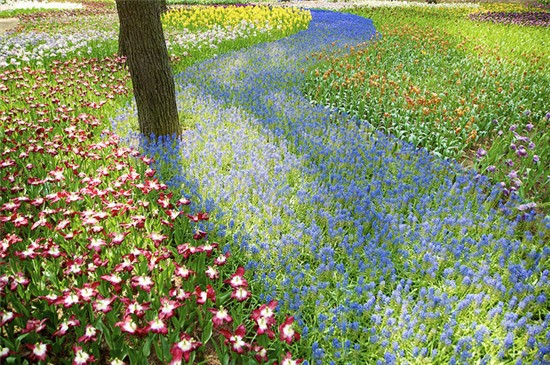 春天,被稱為喜林草的淡藍(lán)色小花綻放了整個(gè)公園。那時(shí),旅客們就好像置身于淺藍(lán)色的天堂中一樣。