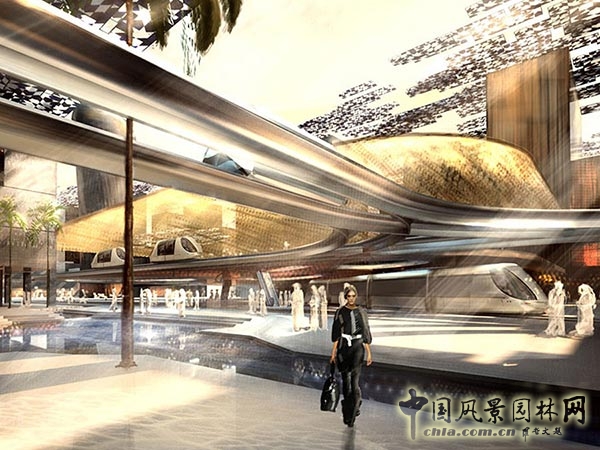 這座城市建在沙漠中,將成為全球首個完全由可再生能源提供動力的“零碳排”和“零廢氣”以及“零輻射”的城市。這個能夠容納10萬人的生態城,未來將不再消耗一滴石油,力求采用可再生能源,尤其是太陽能實現自給自足。除了低能耗的核心理念之外,城市的交通全部采用電動汽車這一做法依舊延續了索拉里的生態城設想。