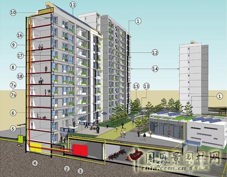 綠色建筑采用節(jié)能減排方案,降低建筑能耗;采用清潔能源綠色公交,建立慢行體系;發(fā)展地熱能、太陽能、風能等可再生能源;保留濕地、水系,預(yù)留鳥類棲息地;以城市直接飲用水作為標志,在水質(zhì)性缺水地區(qū)建立中水回用、雨水收集、水體修復(fù)為重點的生態(tài)循環(huán)水系統(tǒng)。