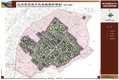 四、市區風貌格局保護規劃圖:保護蘭州自然山形水態格局和自然景觀風貌,對四版總規確定的“三帶五廊”嚴格保護,不得隨意改變山勢水形和生態綠廊進行開發建設;保護城市中心區的局部“軸線對稱放射”格局,并對延續這種對稱風格的新區骨干路網進行保護;對城市軸線和視廊進行保護規劃,控制沿軸線建筑的高度、體量和形式,保證“顯山露水”,強化軸線效果。