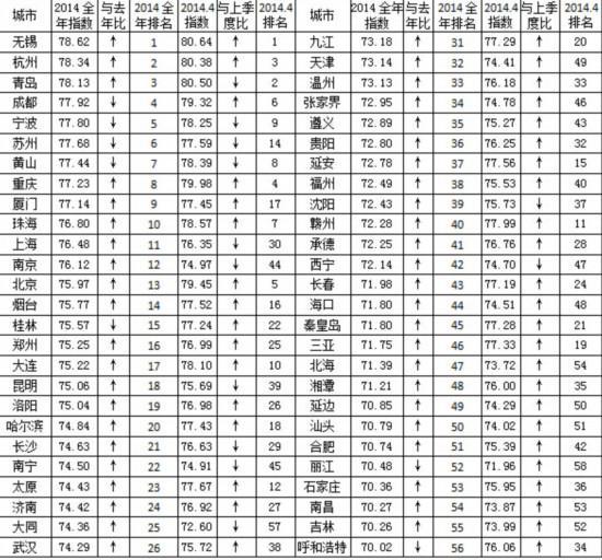 從中國旅游研究院獲悉,日前,2014年全年全國游客滿意度調查報告已在線公布。報告顯示,全國2014年全年的游客滿意度指數為74.10。在56個樣本城市中青島位居第三,與無錫、杭州同屬滿意度較高城市。濟南位居24名,也超過了全國的平均水平。