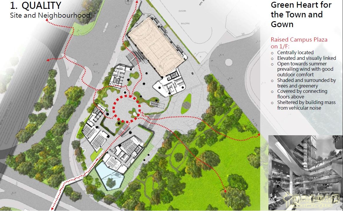 這個項目是一個真正可被稱為“綠色建筑”的校園設計。綠色并不再局限于綠化,而是應該怎樣通過綜合設計,力求做到節約能源,低碳,在滿足主要使用者的需求下,同時最大程度惠及周圍環境與社區。在有限的土地及資金預算下,怎樣把校園的規劃、建筑、景觀設計相結合盡可能地在能源節約、材料運用方面做深入研究,為師生創造舒適、高效地教學環境?Thei最新校園設計榮獲了2014年“香港環保建筑”最高榮譽獎(Green building Award 2014)及香港建筑環境評估HKBEAM的金獎。