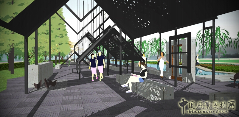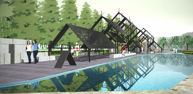 運用現(xiàn)代的設(shè)計語言、中式水墨畫虛實相結(jié)的手法,并結(jié)合湖北的地域特征,通過簡影、映射、神韻等方式,傳達(dá)一種生態(tài)自然的鄉(xiāng)村印象,體現(xiàn)了回歸自然、崇尚自然的人文精神。