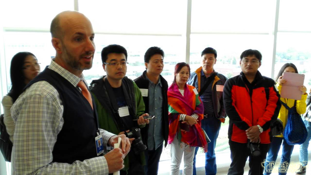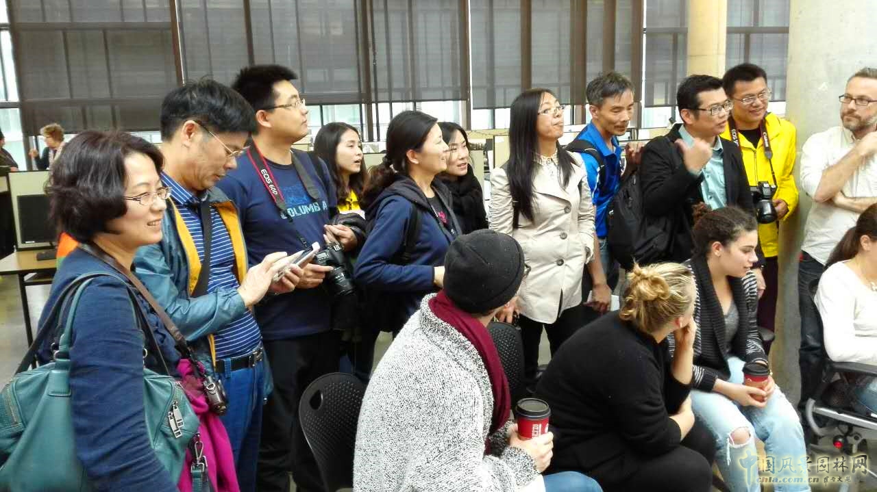 陪同講解的是景觀建筑系的助理教授Jacob Boswell,他向大家介紹到:"景觀設計專業本科每屆招生不超過20個人。"精少的招生人數,讓這里的每一位學生都能得到充分的指導和實踐。考察中,成員們參觀學生的設計圖紙以及建模造型,后又與景觀系教授Deborah Georg、講師Karla Trott進行學術交流,充分感受到中外景觀教學的不同,對于西方的學術教育與學生專業素養有了更加深入的認識和思考。