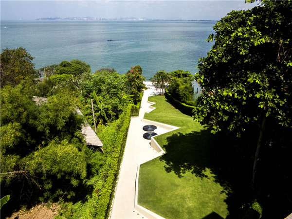 這個會所會與城市燈紅酒綠生活與安靜的住區區之間,它吸引游客前往到這個銷售展示空間中。會所與海灘之間的聯系十分陡峭,不太好布局功能區,因此設計師將這條路徑處理得非常干凈,看向海灘的視野沒有受到任何阻擋。