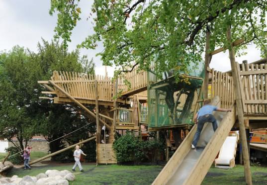這個游樂園與我兒童時期的游樂園很相似,它是由Erect Architecture事務所建造的,特色是一系列的戶外空間、塔和攀爬結構。它位于維多利亞一個植物園的殘余物之間,所以這個公園的主題就與探索和愛護樹木有關。這些結構由回收的門、許多未加工的樹木部分以及天然卵石構成。它也包括一個菜園、果園和陡峭的高山,附近還有一個安全的篝火區。