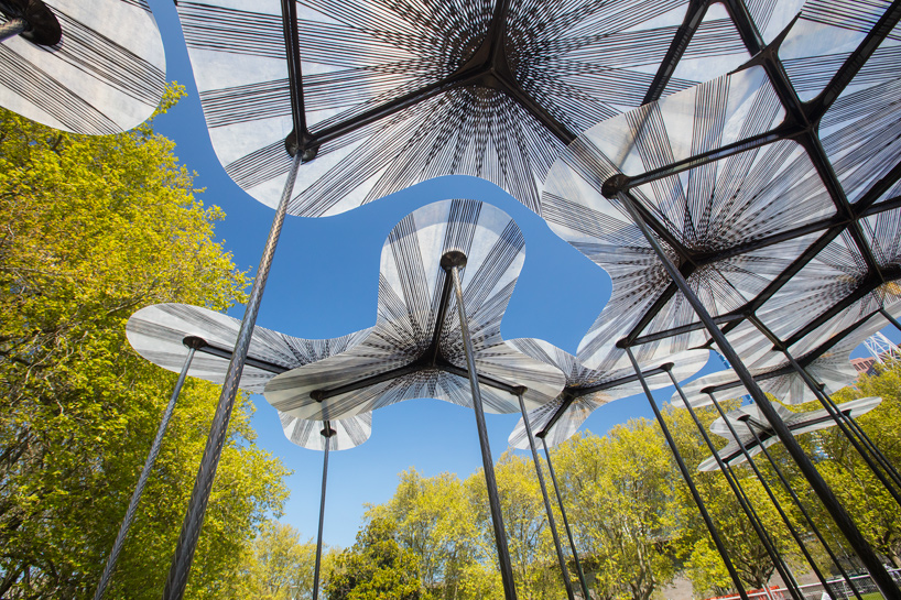 透明葉片組成的華蓋由細長的柱子支撐著