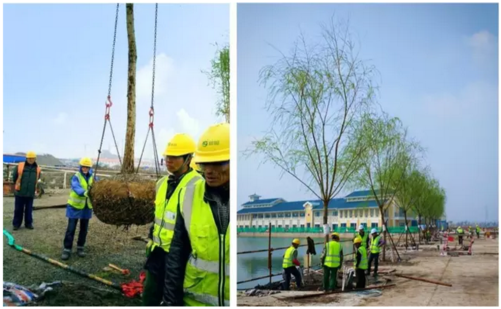 此外,喬木的吊裝,不能使用窒息式捆綁法,必須使用專業的吊裝工具來進行吊裝,且施工過程中嚴格禁止使用挖掘機等對苗木有損傷的機械進行種植,此方法做到了對于苗木種植的零損傷。苗木種植完成后由現場工程師進行二次驗收,才最終完成整個種植過程。
