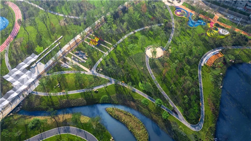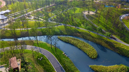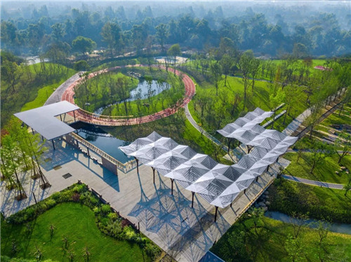 在成都塑造“人、城、境、業”生態可持續的大美公園城市總體布局下,沙河源公園的建立,在錦江綠廊核心位置,彌補了綠廊現狀的缺失部分。并以此串聯起整個規劃片區的慢行系統,成為綠道上的重要驛站。同時在踐行“綠滿蓉城、花重錦官、水潤天府”的基礎上,將可進入、可參與、景觀化、景區化的原則進行再實現。