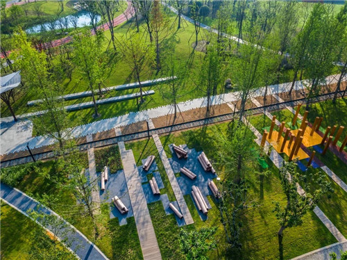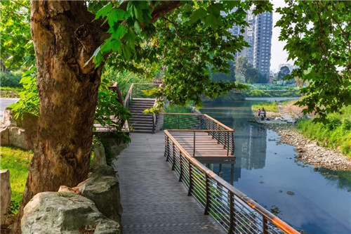 以木材文化為設計主題,尊重生態、感懷歷史,提煉出極具特色的水木華年、木排水憶、花林漫徑、云汀渡橋、水杉長堤等生活藝術場景,展現公園四季有景可賞的自然游玩性,再現場地的文化記憶,助力成都碧水長流、生機盎然的宜居濱水長廊新風貌。