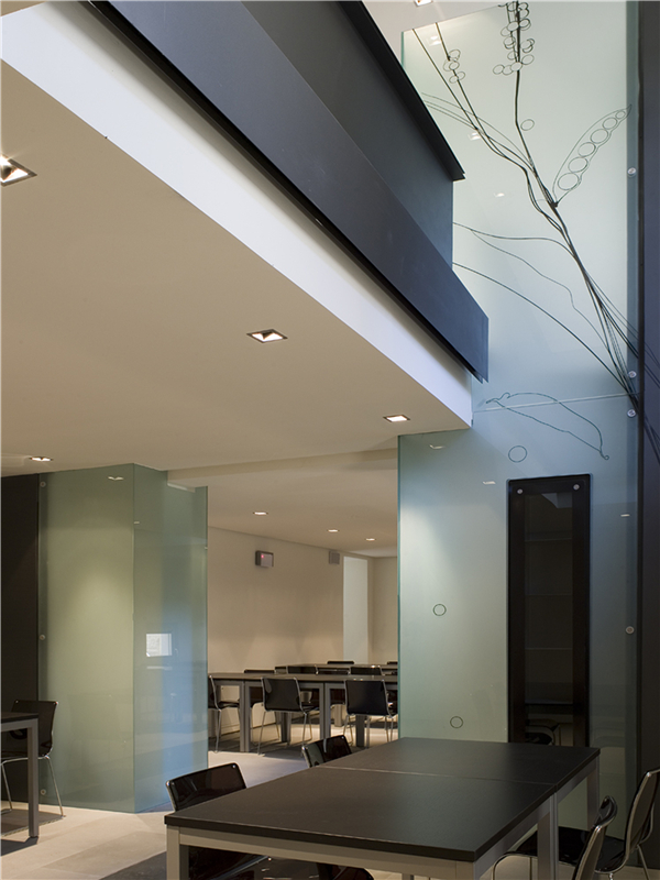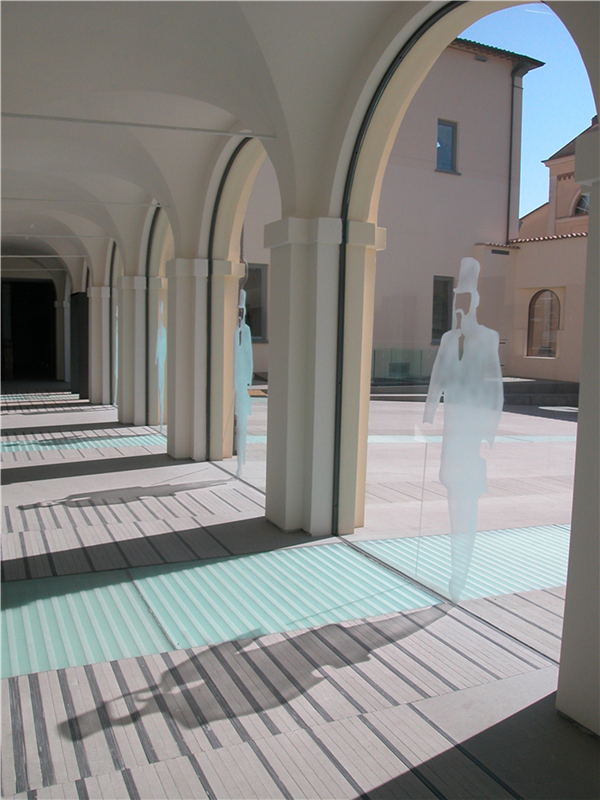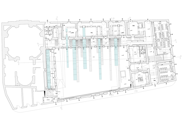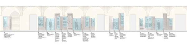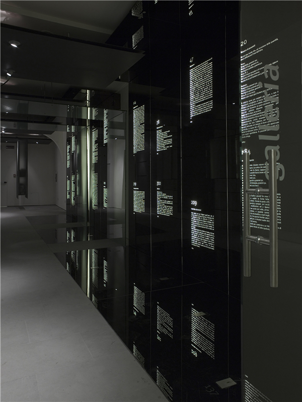 該項(xiàng)目的核心是具有歷史意義的入口大廳,略微傾斜的平面上的玻璃帶設(shè)計(jì),引領(lǐng)游客穿過門廊及Casa Artusi的入口。設(shè)計(jì)的主導(dǎo)思想是考慮材料和環(huán)境的視覺感知,將歷史建筑群的不同功能單元詮釋為一個(gè)整體。Artusi先生的故事作為統(tǒng)一元素,在概念及視覺上串聯(lián)整個(gè)建筑。交替的玻璃和鋼條創(chuàng)造了一個(gè)強(qiáng)烈展現(xiàn)室內(nèi)空間的系統(tǒng)。幾種特色材料(鋼、玻璃、聚碳酸酯和地板石)不斷產(chǎn)生小的變化,更好地展現(xiàn)了Artusi的故事感。